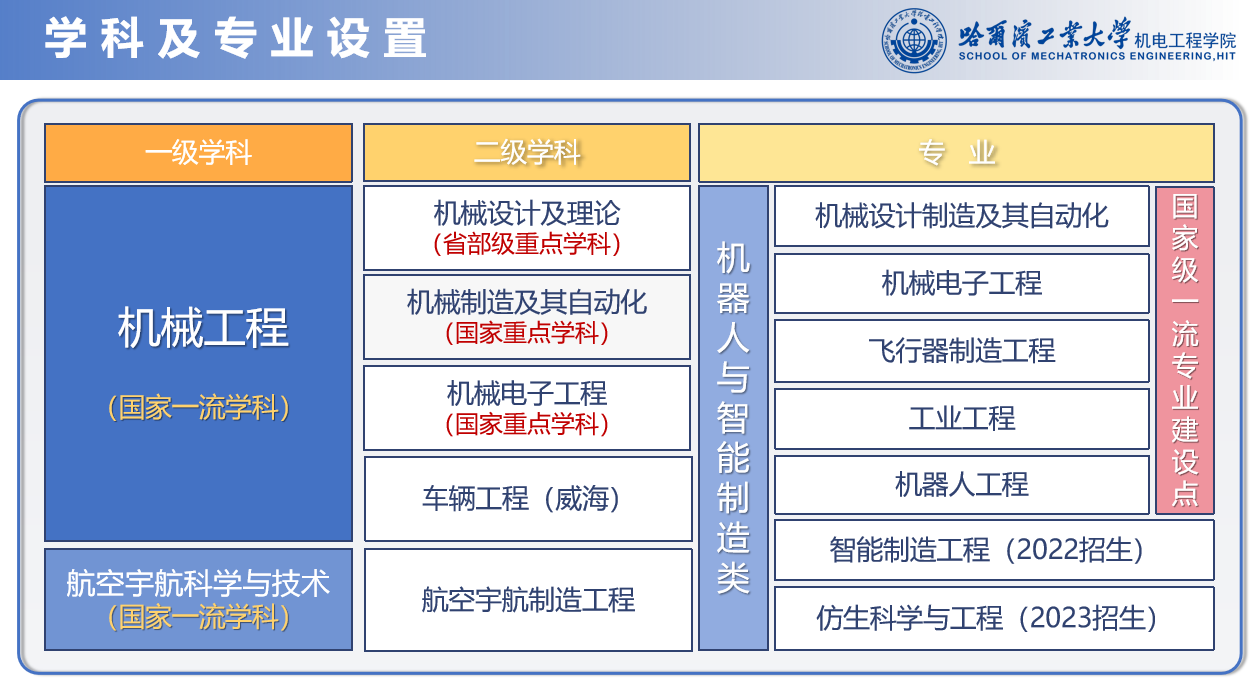 哈工大机械工程学科始建于1920年,是我国最早成立的机械学科之一,是全国首批硕士点和博士点学科,也是首批博士后流动站、首批一级学科博士学位授权点单位。2007年入选全国首批一级重点学科,2017年入选首批双一流建设学科,在历次学科评估中均名列前茅(首轮第2名,第四轮A+)。历经百年建设,机械工程学科整体实力已进入世界一流学科行列,2025年US News机械工程学科排名第5名,QS世界大学学科排名第36名,支撑哈工大工程学进入ESI全球前万分之一行列。